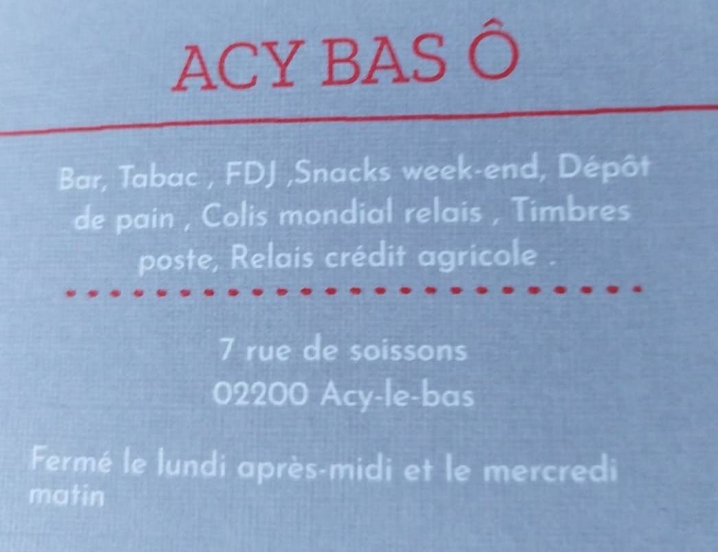 Bar Tabac FDJ Snack le week-end Dépot de pain Colis mondial Relais Timbres poste Relais Crédit agricole